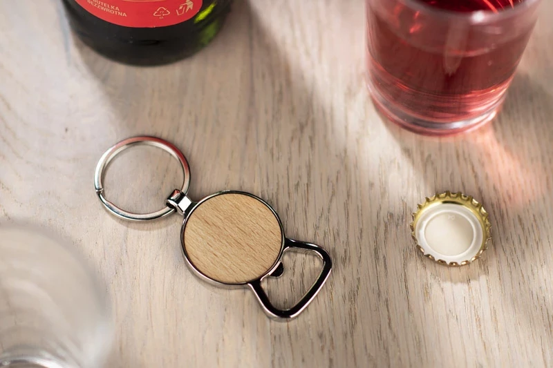 funkcja breloka i otwieracza do kapsli. Drewno jest produktem naturalnym, mogą wystąpić niewielkie różnice w kolorze co może mieć wpływ na końcowy efekt znakowania. (każda sztuka może mieć inny efekt końcowy)
